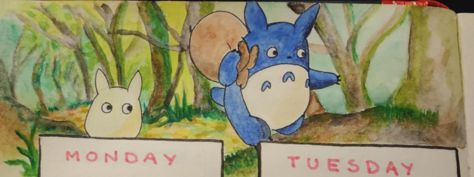 Odkopuję trochę wątek. Dawno niczego nowego nie narysowałam (od czasu zgłoszenia na konkurs z alter ego). Kryzys twórczy i takie tam. Az dzisiaj machnęłam średniego i małego Totoro. Zdjęcie trochę rozmyte, w rzeczywistości wygląda lepiej.