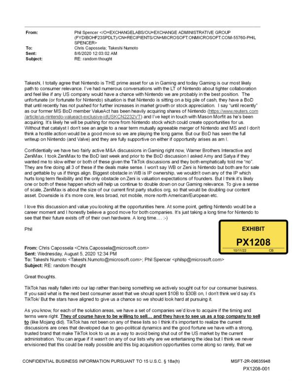 Y parece que el 2023 está siendo el año de las filtraciones, pues recientemente, y como parte de la investigación del FTC (Federal Trade Commission) podemos leer en un email interno de la compañía, se ve las ganas que Xbox le tiene a Nintendo.