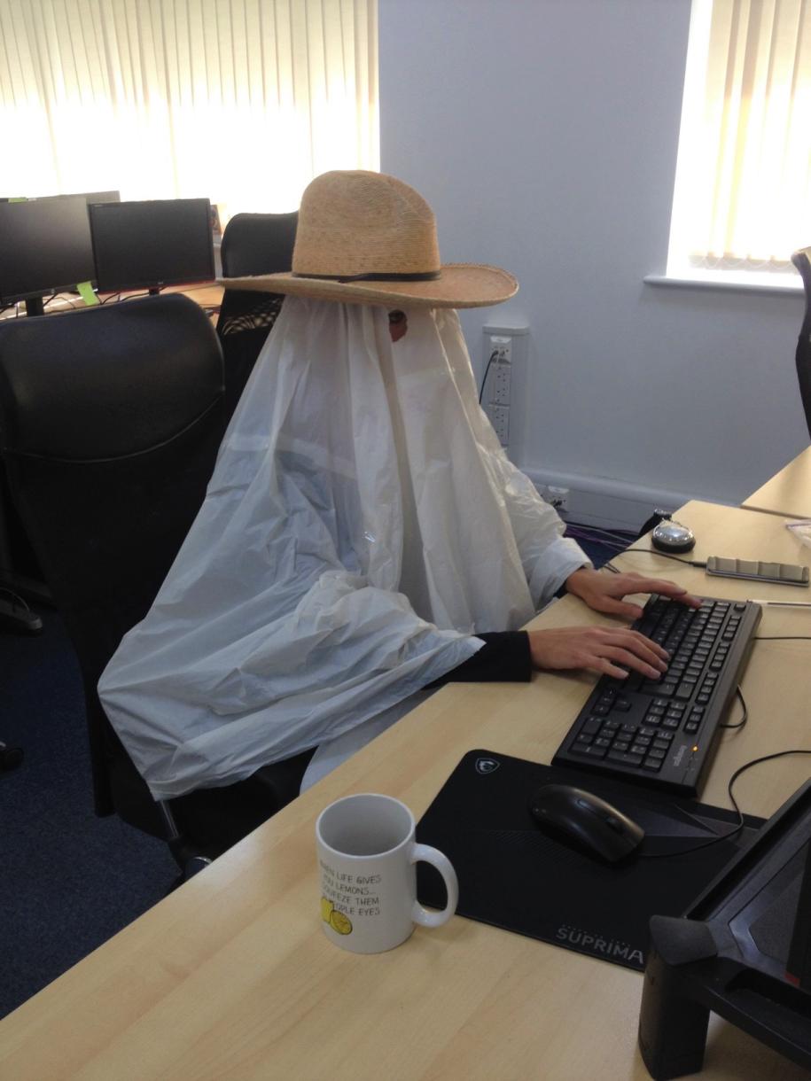 Aquí en la ofi el año pasado...¡¡por poco se mueren del susto!! 😝