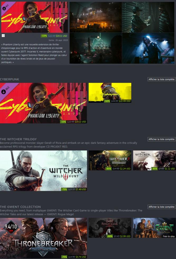 Here are some new promotions on STEAM, including THE WITCHER 3 for $7.45! And CB2077 for less than $23