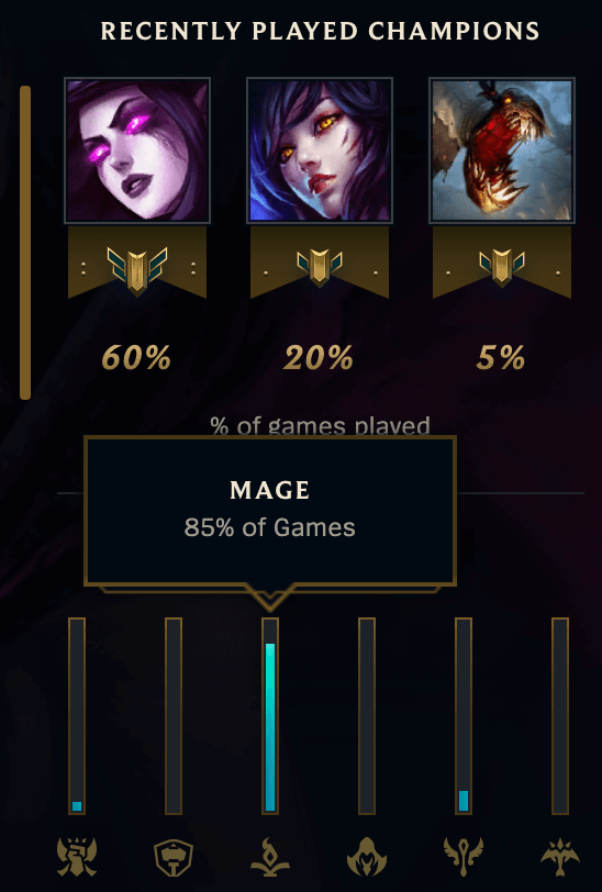 Sebbene abbia iniziato a giocare a Lol anni fa, sono ancora un neofita. Sono livello 29. Se mi impegno un altro poco posso iniziare a giocare ranked. Tuttavia a me piace giocare per divertirmi e uso uno stile di gioco sempre attento e responsabile ma rilassato. Quando l’ansia e la competizione prendono il sopravvento, quello é il momento in cui il mio Lol prende una lunga pausa!