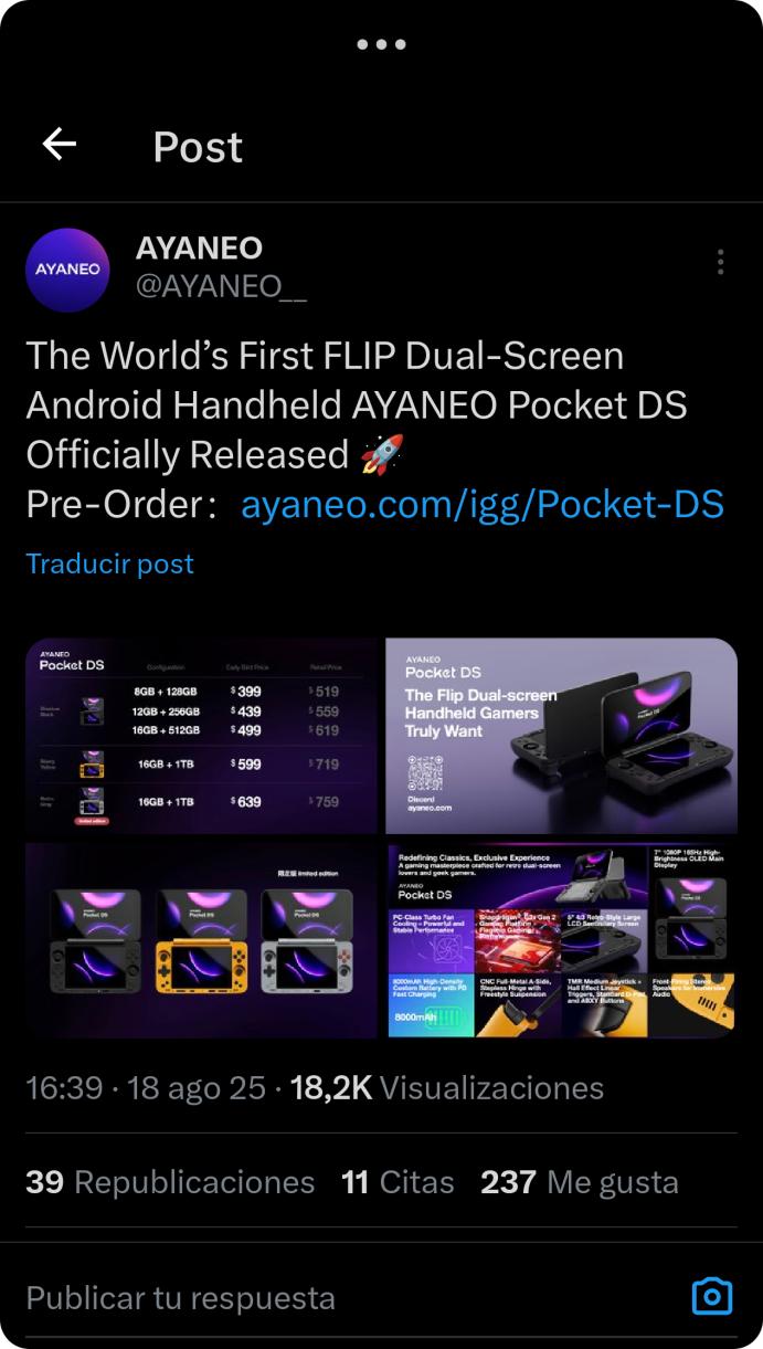 Pero Ayaneo creo que si esta centrada en consolas portátiles y ya no?, me sonaba mas de pequeñas de emulación y antiguas generaciones de consolas portátiles eso si (las cuales eran también caras y menos optimizadas claro).