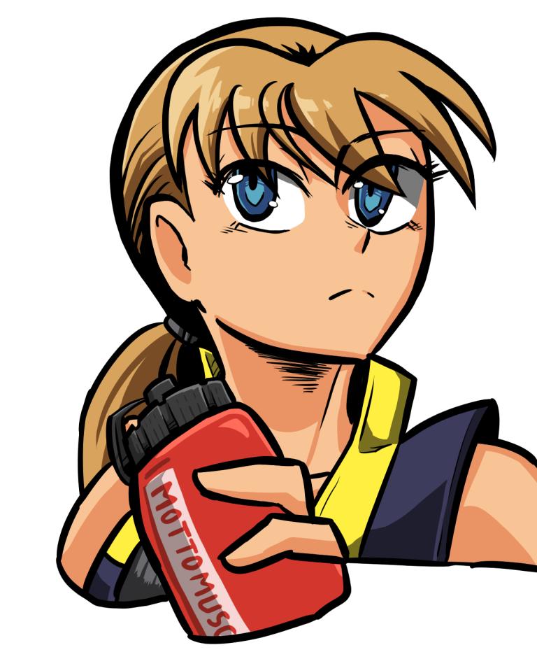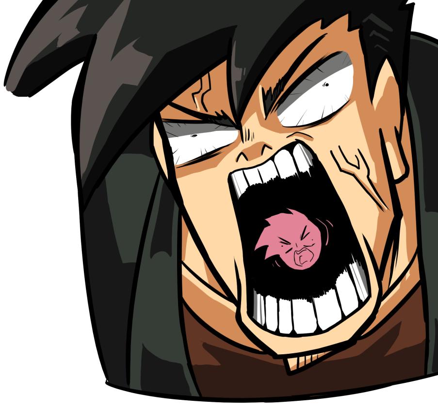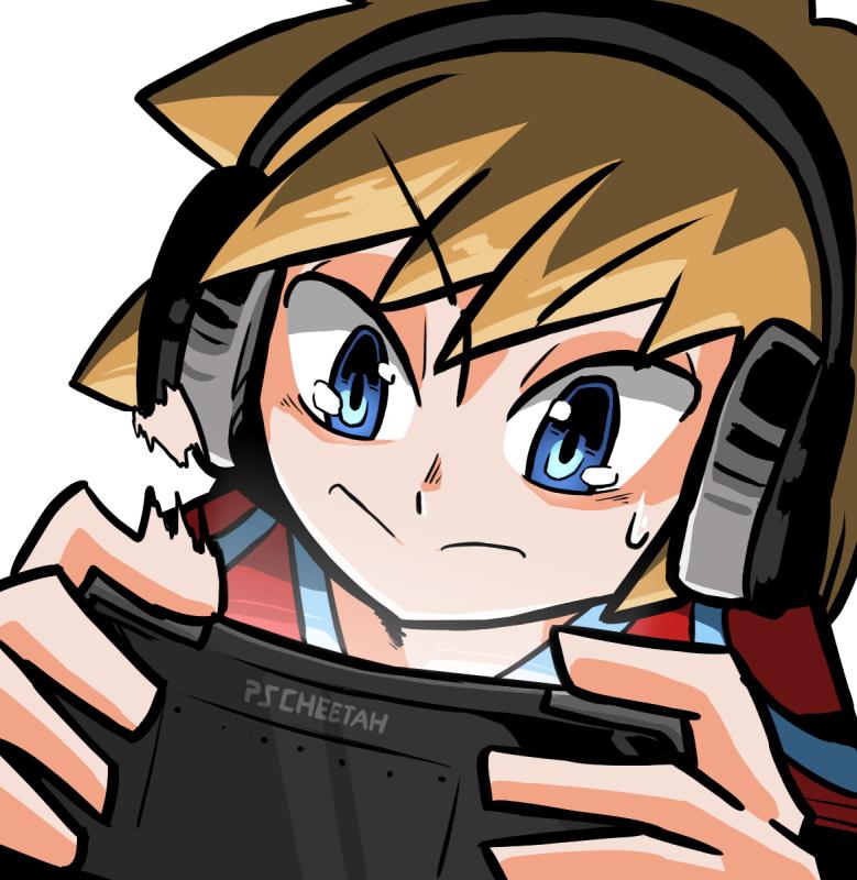 A teenage boy who parodies the stereotypical gamer. He fights at mid-range, wields a laser sword with good reach, and shoots projectiles. In fighting game terms, he’s a shoto. His ultimate summons a magical girl who deals massive damage.